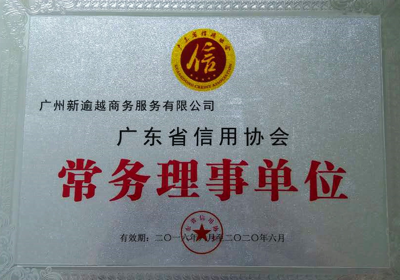 5月30日,广州新逾越商务服务有限公司,经过一个多月的评估通了审查,荣幸的成为广东省信用协会常务理事单位。